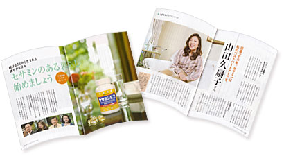 サントリーの健康食品「セサミン」に関する冊子ゴマの健康成分からつくられたサプリメント「セサミン」を健康のパートナーにしている愛用者として、冊子内「セサミンのある暮らし」のコーナーに出演。